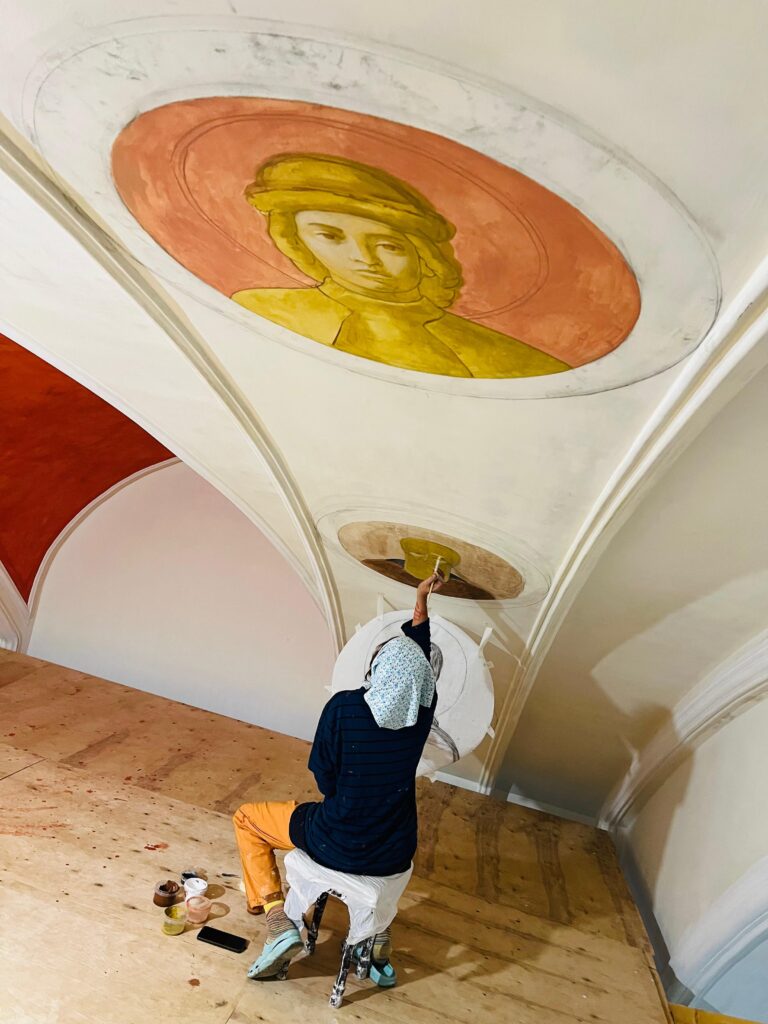 - Восстановление архитектурных деталей — Особое внимание уделяется восстановлению архитектурных деталей и украшений на фасаде храма. Каждая деталь воссоздается с уважением к историческому дизайну.